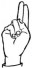 На ћирилици написано МИЛОМИРА РОГЛИЋ састоји се из 14 слова [?]. Исписано ћириличном једноручном азбуком за глувонеме: